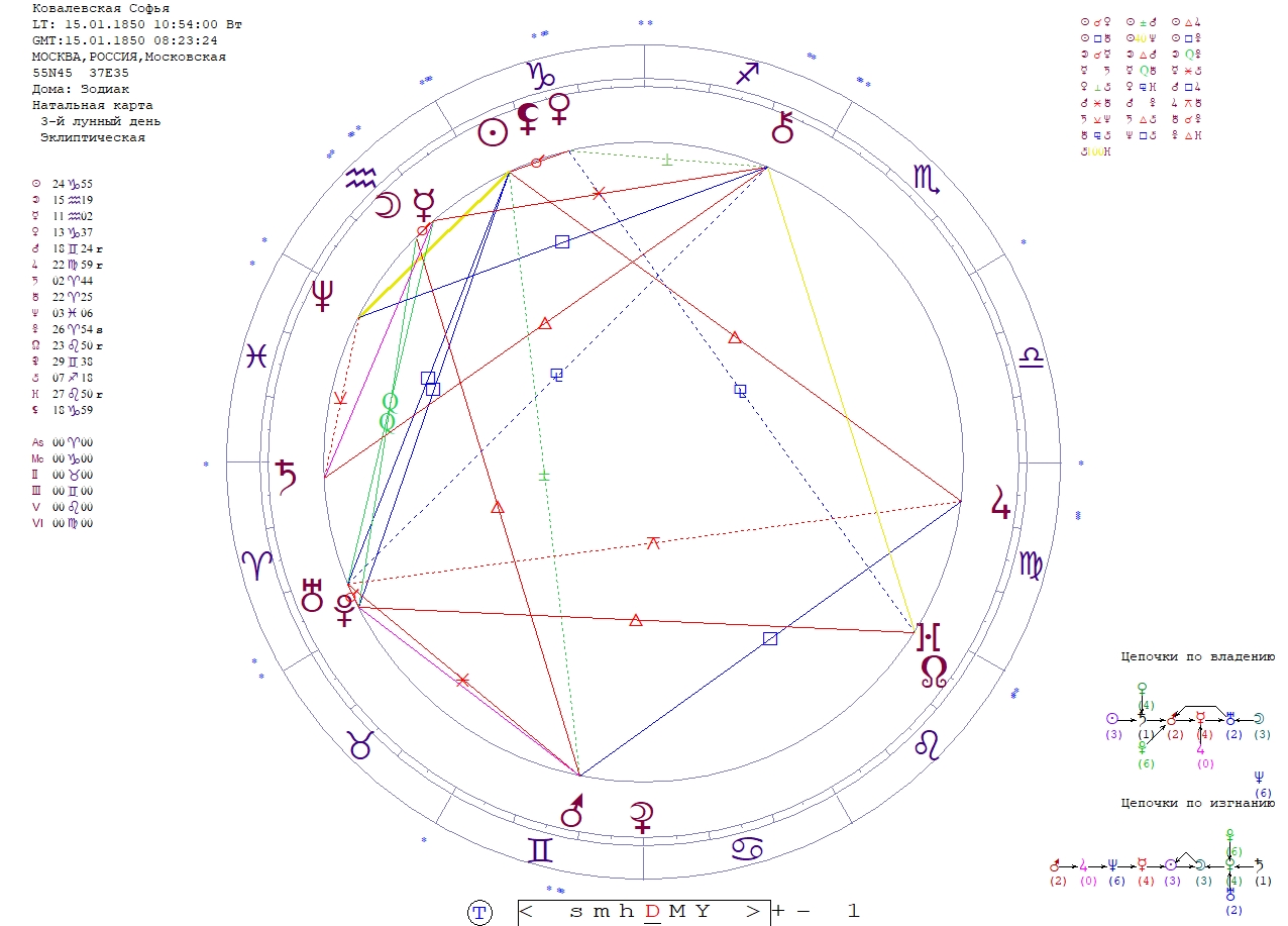 Ковалевская Софья Васильевна: Меркурий в Водолее в квинтиле с Ураном и секстиле с Хироном.
