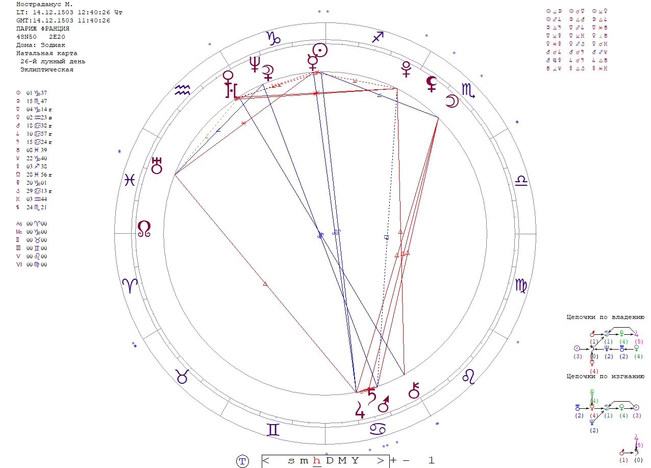 Мишель Нострадамус. Солнце в соединении с Меркурием, и обе планеты в секстиле с Ураном.